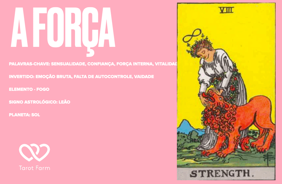 A Força no Tarot é uma carta muito positiva, porque indica a facilidade que todos tem para superar alguns desafios. Sem esquecer também de superar a situação em relação a algo que te incomoda, ou seja, é preciso pensar nisso.