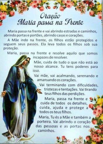 Maria, passa na frente e resolve aquilo que somos incapazes de resolver. Mãe, cuida de tudo que não está ao nosso alcance. Tu tens poderes para isso.