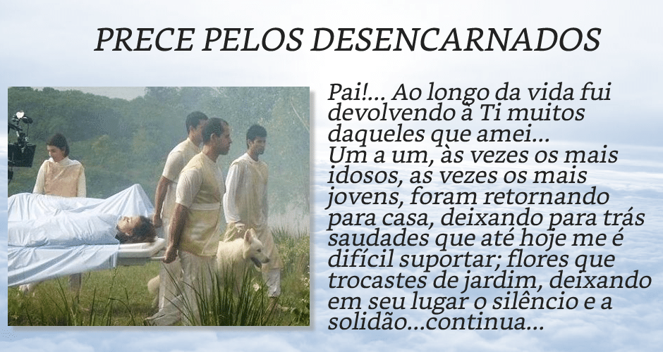 A prece é uma forma de comunicação com o divino e com aqueles que já não estão mais neste plano terreno. É uma forma de enviar amor, luz e energias positivas para aqueles que partiram e também para si mesmo, pois a prece traz uma sensação de paz e conforto.
