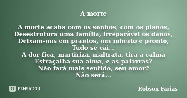 Sonhos sobre a morte podem ser assustadores, mas também podem ser uma forma de compreender melhor nossa própria mortalidade e a vida em si. Muitas vezes, sonhar com a morte pode ser interpretado como uma oportunidade de renovação, de deixar para trás velhos hábitos ou situações que não nos fazem bem. Além disso, a morte também pode ser vista como uma passagem para um novo plano de existência, uma chance de evoluirmos espiritualmente. Por isso, é importante prestar atenção aos detalhes do sonho e tentar interpretá-lo da maneira mais positiva possível. Se você sonha com a morte com frequência, pode ser interessante consultar um especialista em sonhos ou buscar ajuda espiritual para entender melhor o significado dessas visões noturnas.